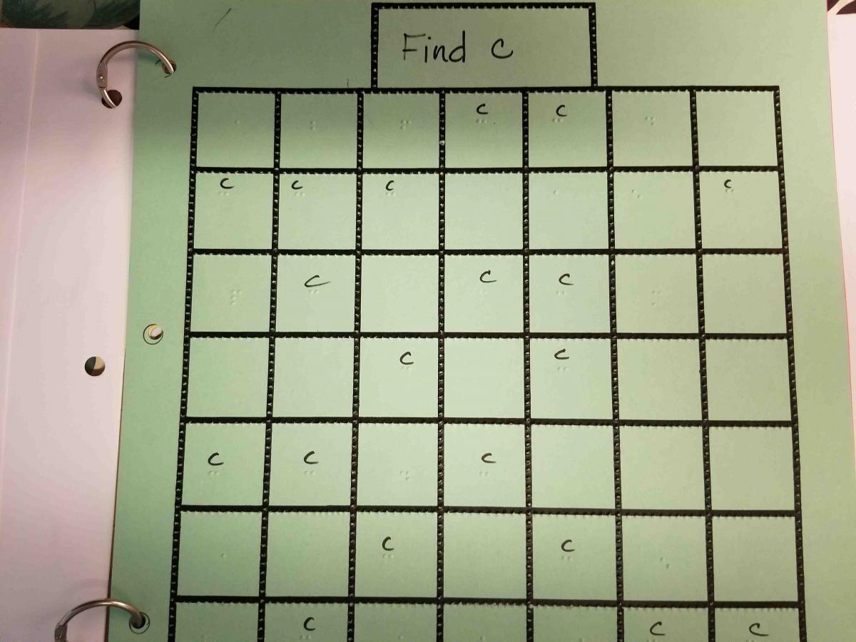 We made tactile books with ring binders, beginning with shapes, big/little, etc. As she developed her tactile discrimination skills, we moved on to basic braille worksheets, where she tracked a line of braille, looked for the letter that was different, found a break in the line, etc. She marked her answer with a push pin or scribbling.