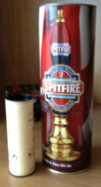 Rolling pin, pastry cutter, paintbrush, glue, cork, small ball, large ball, lens cleaner, inner from kitchen roll.