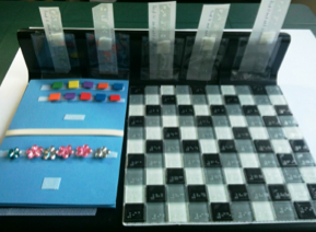 Number LineOn laminated cards, with braille sticky back numbers attached. Cards attached to a line of Velcro on a foam board