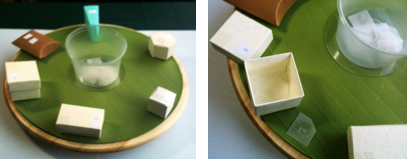 The box contents can be used to understand the oneness of one, the ‘twoness’ of two, as well as to understand the ‘pencilness’ of the pencil, or the woodeness of the wooden spoon.