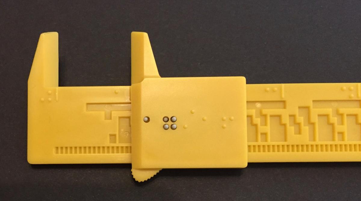 Distance and scale are also areas to teach explicitly. There are activities such as measuring a stride length and using it to pace out the side out the size of a room, football field, etc. But what do you do to transfer that to “map space”? It can be quite challenging to accurately compare distances and sizes on maps if the items being represented are very detailed. For advanced students, it may help to employ measuring tools. One unique and very affordable example that recently became available is the Tactile Caliper; it allows distances and sizes to be measured to 1/16”.