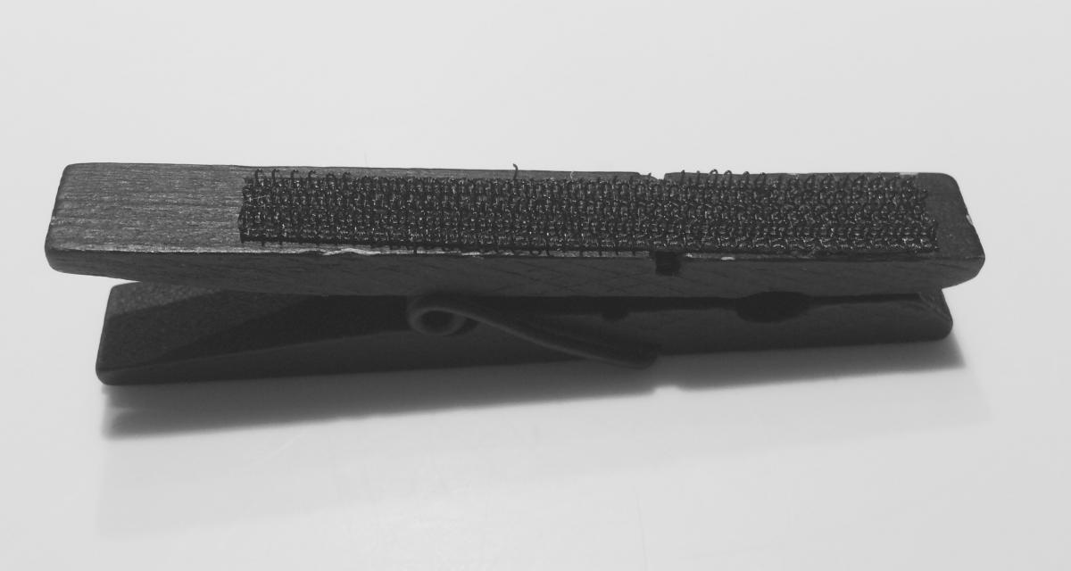 Spray paint wooden clothespins black.
