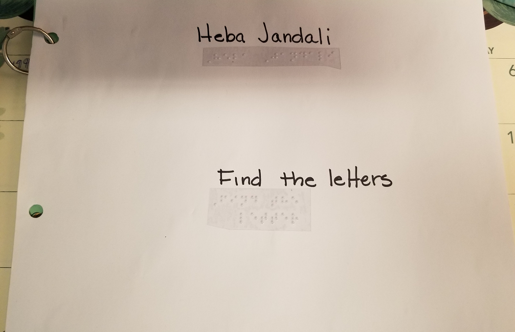 As with most students, Heba loved looking for mistakes in my braille. I intentionally made mistakes, so that she could work on her proofreading skills. This also helped her to overcome her fear of making a mistake, as she began to understand that this was something that happens to everyone.