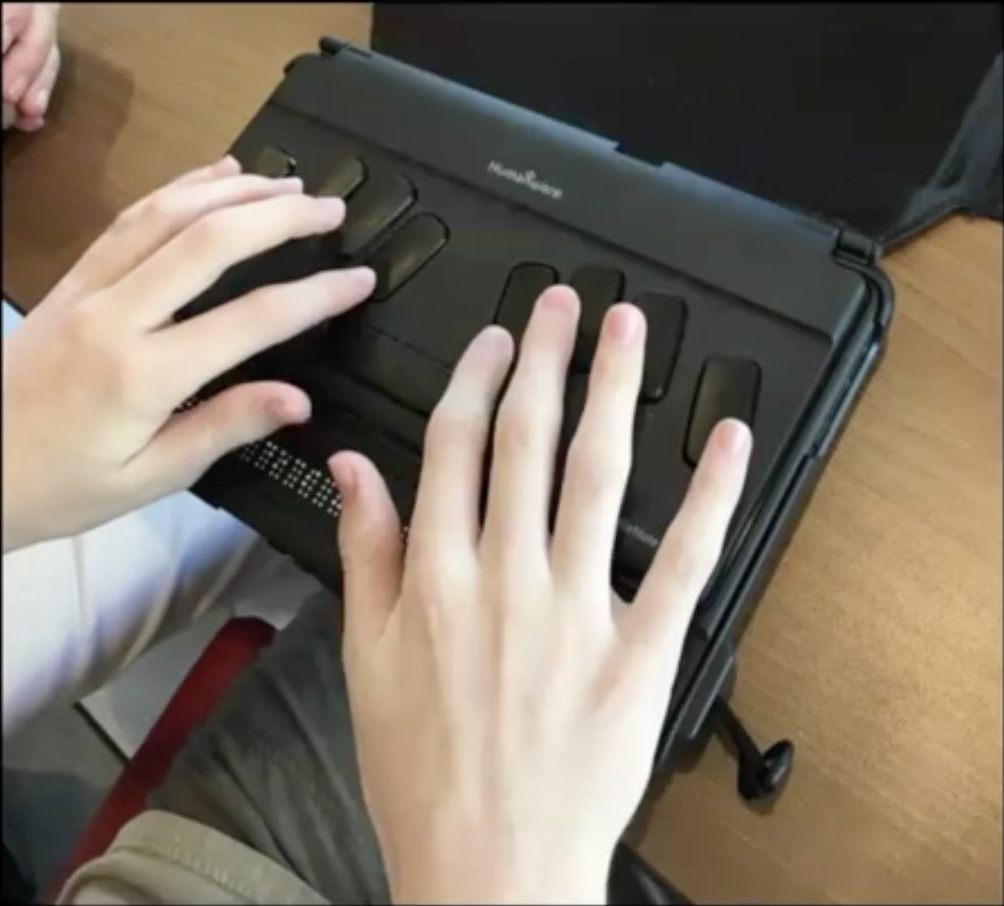 There are several ways a student may write using braille. Technology has greatly enhanced the way in which a student’s writing produced in braille can be made available in print for you and others to read.